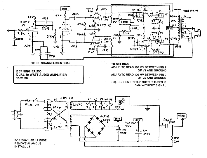 Dangerous voltages are present in the EA-230. Repairs and biasing should not be attempted by those not familiar with servicing equipment containing high voltages.