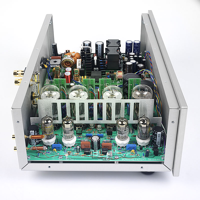 The design of the Berning ZH270 power amplifier represented a radical departure from that of other amplifiers. The ZH270 was the first amplifier using all-tube amplification to properly match the high-voltage, low-current operating parameters of vacuum tubes to the low-voltage, high-current drive requirements of dynamic loudspeakers without using audio-output transformers. The technology is detailed in Berning US patent 5,612,646, and a simplified overview is given below. The ZH270 has gained much respect for its transparency, versatility, and reliability, and had enjoyed a production run of over 10 years. The ZH technology has also proven itself in other recent Berning products as well.