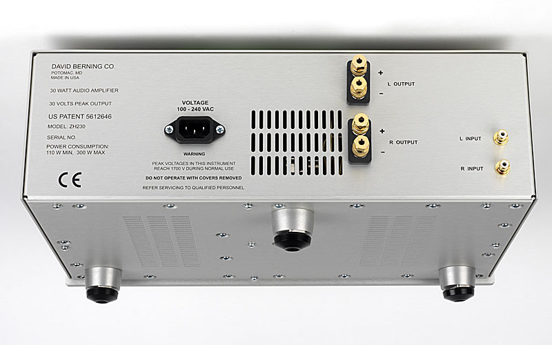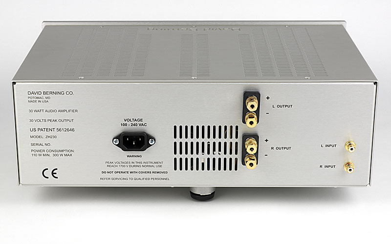 "I was totally smitten by the David Berning Company's ZH-230. It solves some of the significant drawbacks of tube amplifiers -- short tube life, heavy weight, limited bandwidth -- while retaining the tonal luminosity, detail, and smoothness for which tubes are prized. Its ability to provide almost instantaneous power made it sound more powerful than its rated output. ...